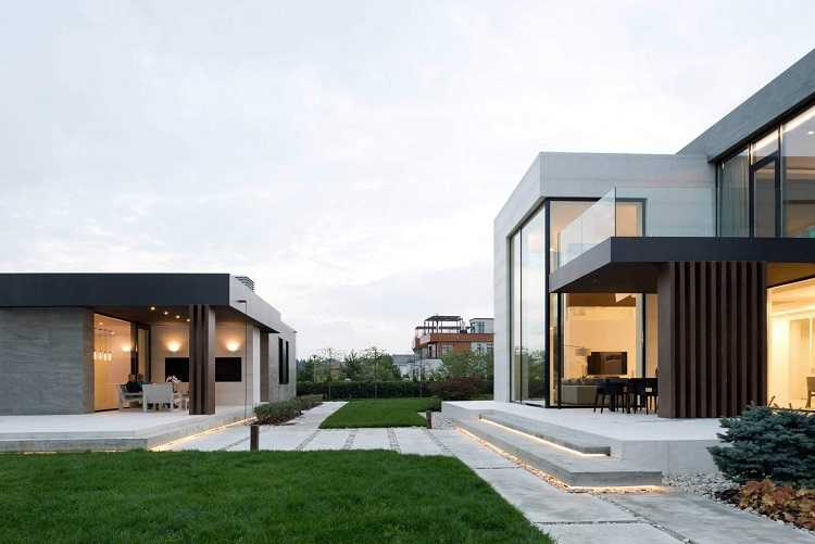 Чуть позже сформировался такой стиль, как минимализм, который тоже отличается чёткостью форм и отсутствием лишних деталей, но он менее грубый, а его основные цвета — более нежные и приглушённые. Он идеально подходит для небольших территорий, которые нужно визуально расширить. Дизайнеры придерживаются мнения, что желательно оформлять экстерьер и интерьер дома, а также ландшафт участка в одном стиле, чтобы все элементы гармонично сочетались. Специалисты-декораторы часто делают выбор в пользу минимализма, ведь он подходит и для помещений, и для придомовых территорий.