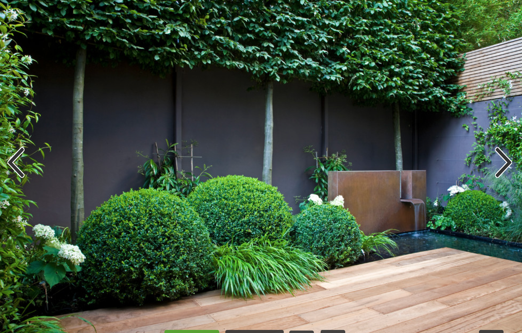 Допускается добавление лилового, охры, терракотового. При выборе цвета растительных насаждений стоит обратиться к светло-зеленым, голубоватым или серебристым оттенкам кроны и листьев. Такие цвета отличают хвойные деревья или кустарники.